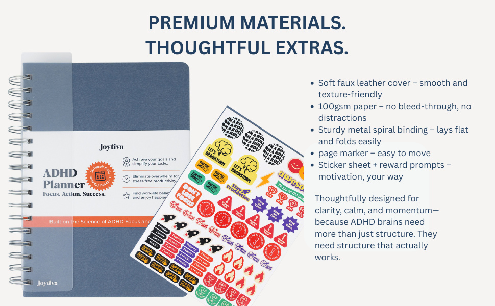 With premium materials, ADHD-friendly design, research-backed strategies, and your free digital companion guide, everything you need for planning success is right here.